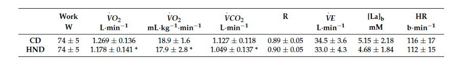 Table 3. comparison of a high nitrate diet and a control diet on exercise performance (Porcelli et al. 2016).