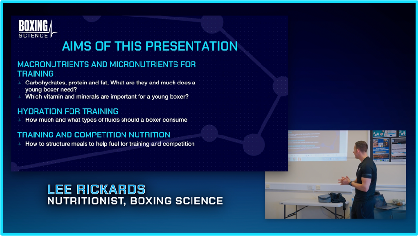 Therefore, we wanted to provide an affordable online seminar that can be easily accessed by amateur boxers and coaches. In this program you will receive an Online Workshop by Performance Nutritionist Lee Rickards.