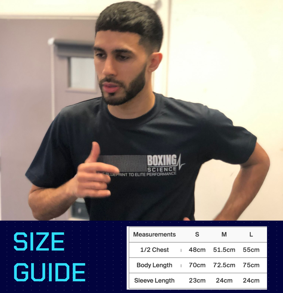 The T-shirt is navy and consists of the brand new Boxing Science brand, representing that you’re following the blueprint to elite performance.