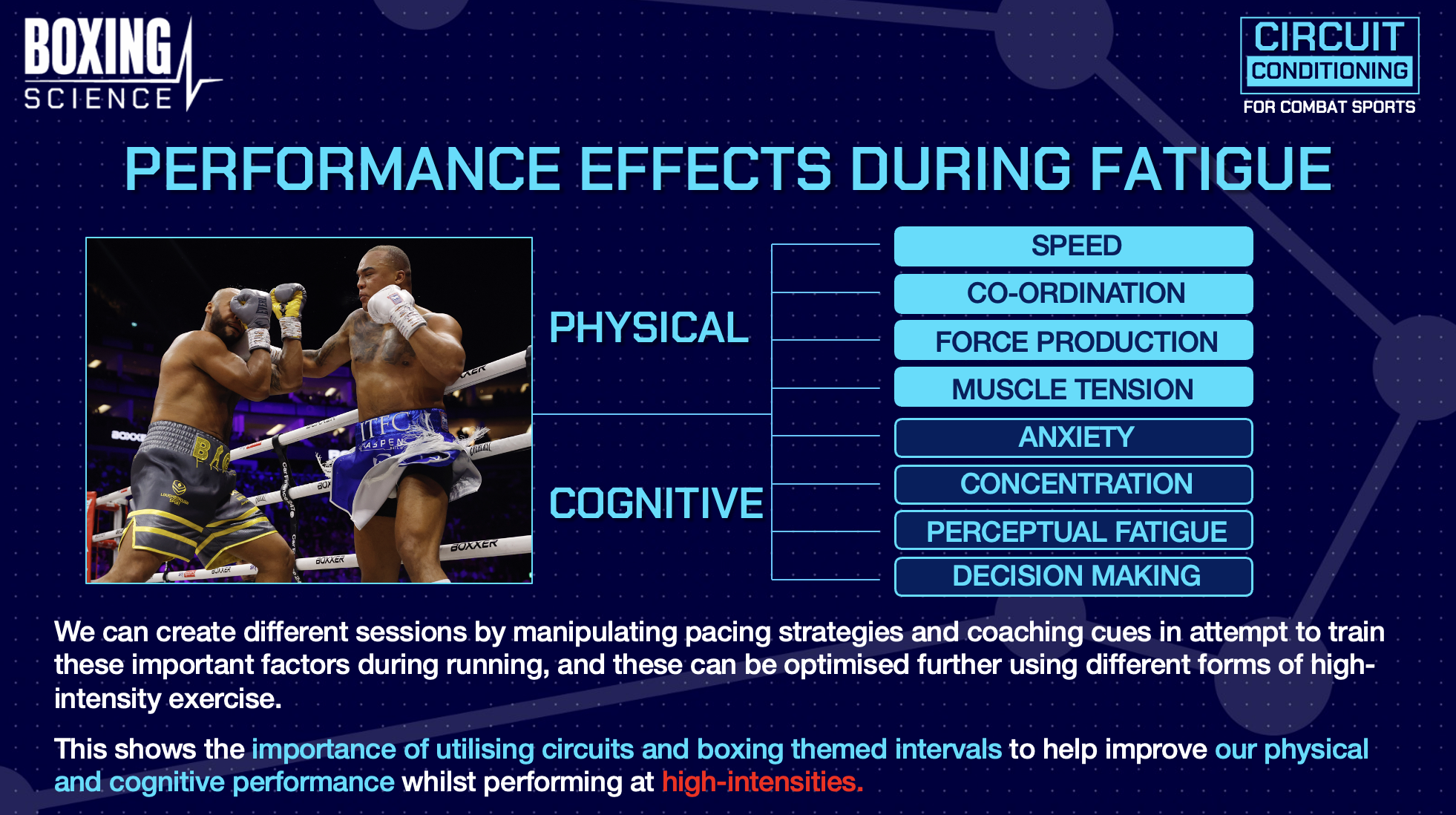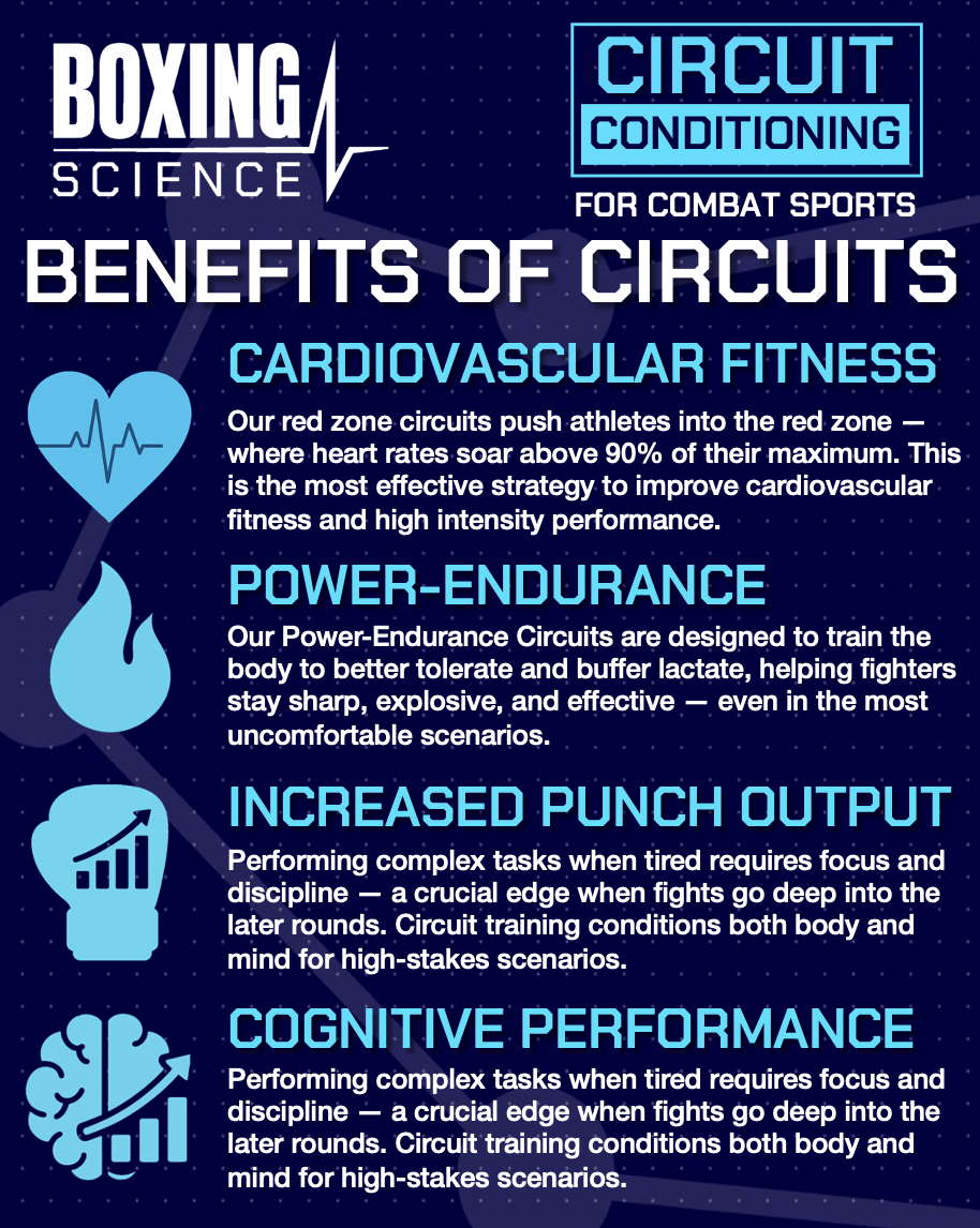 Performing complex tasks when tired requires focus and discipline — a crucial edge when fights go deep into the later rounds. Circuit training conditions both body and mind for high-stakes scenarios.