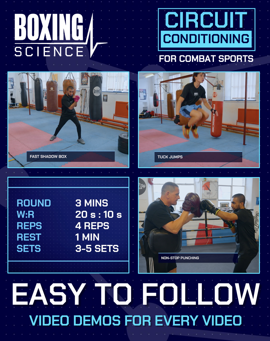 At Boxing Science, our Conditioning Circuits for Combat Sports are a highly effective tool to help fighters get fitter, faster, and stronger through quick, efficient workouts that require minimal equipment — ideal for any training setup.