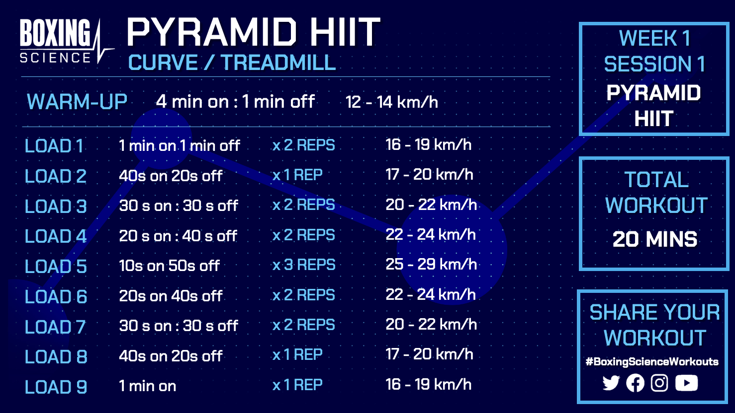 Boxers have  supreme fitness but limited high running speed capability. This is a problem if we want to develop high-intensity intermittent performance. So at boxing Science, we have developed a series of pyramid HIIT sessions to help unlock your speed and fitness.