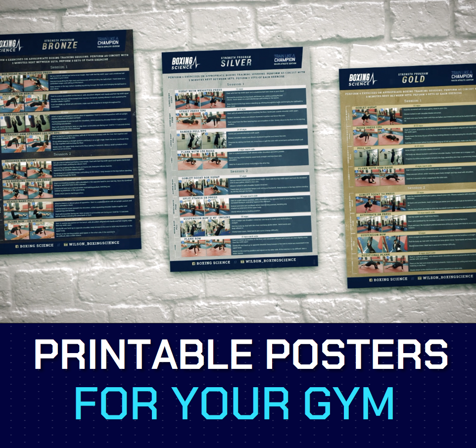 Not only do we give you the tools, but a series of amazing printable poster design that will stand out on your gym wall. This will help you and your boxers understand the training methods, and guide you to better performance in competition.