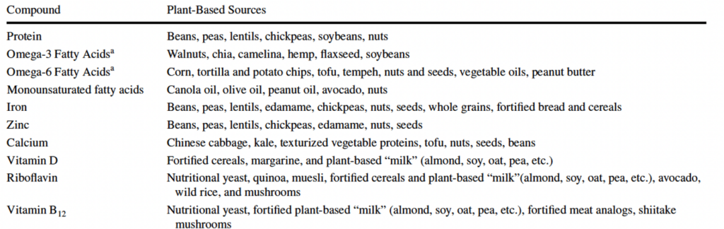 Table 1 plant-based sources with a significant amount of key nutrients adapted from Lis et al. (2019).